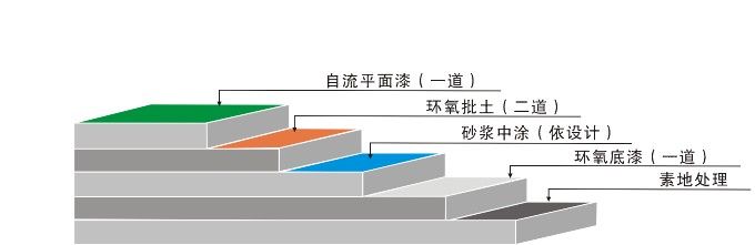 ⑥環(huán)氧面漆:溶劑型環(huán)氧面漆或止滑面漆滾涂二道,完工后整體地面光亮潔凈,顏色均一,無空鼓;